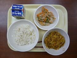 今日の給食は「減量麦ごはん、焼きそば、大根サラダ」でした。今日もおいしくいただきました。ありがとうございます。