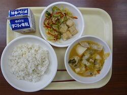 今日の給食は「麦ごはん、八宝豆腐、ギョーザ、きゅうり」でした。今日もおいしくいただきました。ありがとうございます。