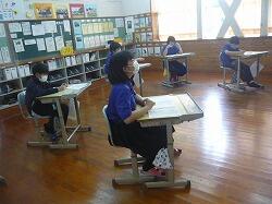 今日から定期テストです。1時間目のテストの様子です。みんな、真剣に取り組んでいます。