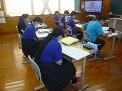 2時間目まででテストが終わりました。3時間目からはさっそくテストの解説が始まりました。満足いく結果だったかな?