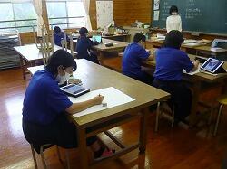 今日の授業の様子です。理科の実験が楽しそうです。美術はタブレットを使って絵を描いています。