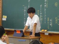 3年生は国語です。一人ずつ発表をしています。短歌か?