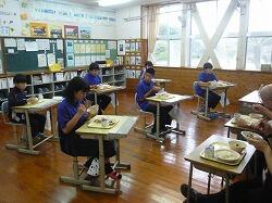 今日の給食は「さつまいもごはん、かぼちゃのすいとん、豚肉となすのみそ炒め」でした。今日もおいしくいただきました。ありがとうございます。