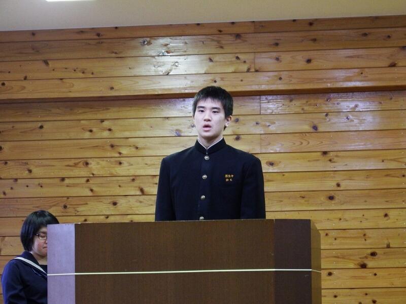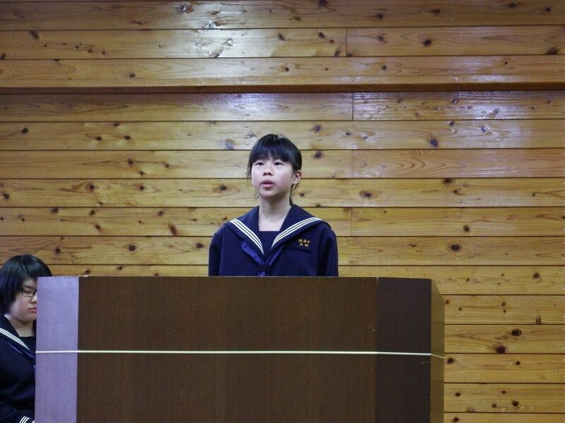 24日(火)、日南市主催の「新春子どもの声を聴く会」が開かれ、本校からは守倉さんが参加しました。発表は中学校の部の1番目だったのですが、これまでの練習成果を精一杯出した発表をすることができました。大勢の前でステージから発表するというこの貴重な機会は、これからの人生で大きな経験や自信になったことでしょう。こういう場をつくって下さった市の方々にも感謝です。よく頑張りました!