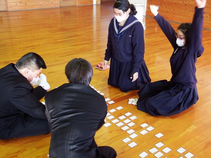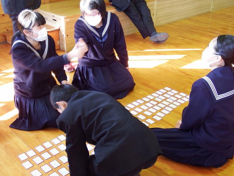 1月13日(金)、百人一首大会がありました。2人1組のチームで対抗戦を行いました。個人の力と学年の枠を超えたチームの力とが合わさり、日ごろの学年ごとの学習では味わうことのできない経験ともなりました。中には読み札の最初ですぐに取るすぐれものも…。終始和やかな雰囲気で、日本古来の文化に触れることができました。