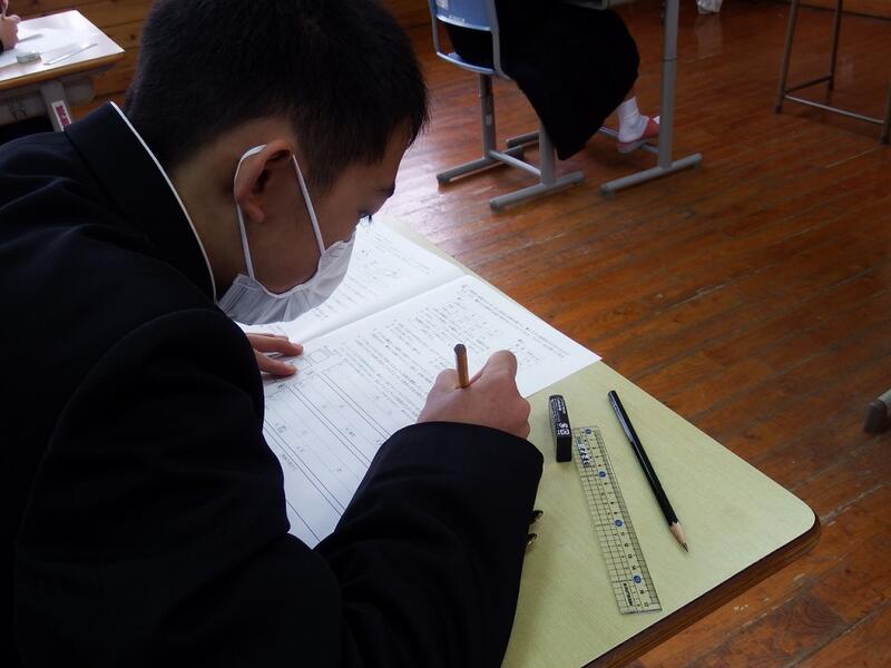 1月18日(水)、2年生実力テストが行われました。このテストは高校の「志望コース」を記入することになっていて、2年生にとっては初めての経験となります。これまで受けてきたものとは違い、受験生へのステップともなるテスト。ぜひこれを機に、これから歩んでいく自分の人生をじっくりイメージしてみてください。テストは明日まで…。精一杯これまで獲得した力を表現していきましょう。