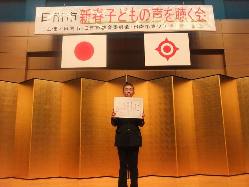 24日(火)、日南市主催の「新春子どもの声を聴く会」が開かれ、本校からは守倉さんが参加しました。発表は中学校の部の1番目だったのですが、これまでの練習成果を精一杯出した発表をすることができました。大勢の前でステージから発表するというこの貴重な機会は、これからの人生で大きな経験や自信になったことでしょう。こういう場をつくって下さった市の方々にも感謝です。よく頑張りました!
