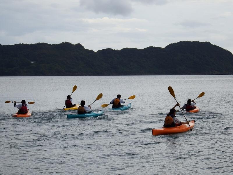 7日(木)、栄松ビーチでNPO法人オーシャンネットワークの方々のお力添えをいただき、シーカヤック体験を行いました。天候不順で2年ぶりの実施となり、この日もあいにくの雨交じりだったのですが、何とか体験ができて、生徒も先生も自然とのコラボレーションができ、楽しい思い出の1ページとなりました。