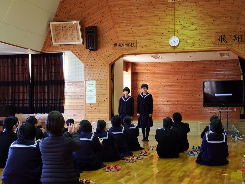 24日(水)、給食感謝集会と壮行会を行いました。給食感謝集会では、給食調理員の方々の仕事のDVDを見て、改めて給食のありがたみを知りました。壮行会は、今週末に行われる県女子駅伝大会に出場する2人を激励しました。日南市の代表として精いっぱい力を出し切ってください!