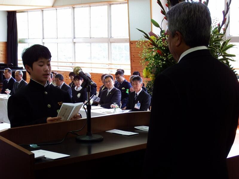 9日(月) 多くのご来賓・保護者の皆様、在校生や先生方の祝福を受け、9名の新入生が入学しました。代表生徒が「失敗を恐れず、何事にも積極的にチャレンジして、中学生らしい、充実した3年間を過ごすことを誓います」と誓いの言葉を述べてくれました。これから先輩たちや先生方と共に深く学び合い、自分磨きに頑張ってほしいと思います。
