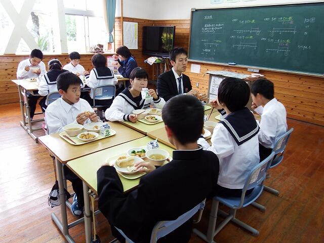 25日(水)の給食から・・・学校生活で欠かせない当番活動の一つ、それは給食当番です。手洗いや消毒を済ませ、衛生面に気を付けながら、給食着姿でひとつひとつ食器に盛りつけます。学期初めで慣れていないのか少し手間取ったようですが、上手に配膳できました。そして、みんなで楽しく会食できました。給食活動の時間は、35分間(準備から片付けまで)。ゆとりを持って食べれるように給食当番の皆さん頑張ってください。