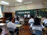 6/5(水)、学校栄養職員の方が来校し、給食後1年生に「中学生に必要な栄養」と題して、講話をしていただきました。健康を維持し、成長するために必要な栄養素やエネルギーについて説明され、最後に「給食はそれに見合って作られています。しっかり食べてください」としめくくられました。生徒たちは改めて給食をはじめとする食事の大切さを学んだようです。学習と部活動を両立させるエネルギーを、これかもしっかり蓄えていきましょう!