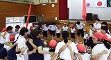 7/19(金)、小中合同運動会の結団式が行われました。中学校のスローガンは、「力戦奮闘~力を尽くして勝利をめざせ~」です。この言葉の通り、各校長先生より団旗を授与される瞬間から、小・中学生それぞれの団長の顔が引き締まって見えました。もちろん、各団に分かれての応援合戦も、初日だったにもかかわらず盛り上がりを見せていました。