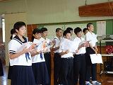 生活委員会からは、9月に実施したあいさつコンクールの表彰です。2・3年生がともに1位という結果でした。今後もすがすがしいあいさつを期待したいところです。