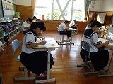 鉛筆をさっと走らせることのできる生徒、一つ一つじっくり考えて答えを導き出す生徒、スムーズに解けず悩んでいる生徒など、取り組み方はさまざまですが、みんな真剣な眼差しで問題用紙に向き合っています。