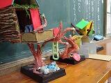 先月、「これは何だろう?」と疑問に思って紹介した物体が、12/17(火)、見事な作品となって校舎内を賑わせています。1年生教室には見る者が思わず笑顔になるような、さまざまな形のツリーハウスが、階段の踊り場には2年生が製作した幻想的な光と色のランプシェード写真が並んでいます。不思議な物体が生徒たちの個性あふれる作品に変身しました!