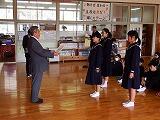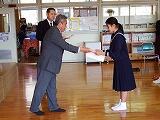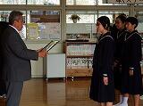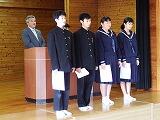 はじめに、読書活動に関する表彰です。地区読書感想文コンクール入選者、校内多読者、スペシャル朝読者(1ヶ月以内に新刊を10冊以上読破)に、それぞれ賞状が贈られました。読書の盛んな榎原中学校です!