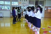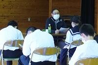 昼休みに、全校生徒が参加して部活動生集会を実施しました。6月に予定されている 地区中総体に向けて、担当から説明がありました。その後、容疑検査を実施して制服などの身なりの確認を行いました。1年生はズボンの丈がまだ長すぎたり、逆に3年生はかなり短くなっていたりしました。