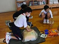 体育の授業で救急蘇生法の実習を行いました。今回はAEDと心臓マッサージ用の模型4体を使って、4人1組で2時間みっちり取り組みました。生徒は、実際に長時間続けることの大変さを実感していました。いざという時に備えて、頭よりも体で覚えておくことができたのではないでしょうか。