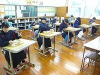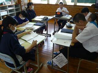 今日は定期テスト2日目です。朝自習はテスト勉強をしました。皆、真剣に取り組んでいます。