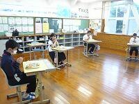 朝自習の様子です。1,2年生は読書、3年生は理科のセミナーに取り組んでいます。