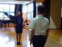 ALTのブライアン先生にも急遽、参加していただきました。さばき方に何度も挑戦されていました。