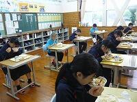 2年生は3時間目に美々鰺のお寿司、お吸い物を食べたのですが、給食もしっかりいただきました。