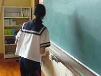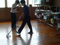 清掃前には黙想をします。一人一人責任をもって自分の清掃場所をきれいにします。