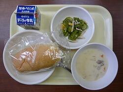 今日の給食は「コッペパン、マカロニのクリーム煮、アスパラサラダ」でした。今日もおいしくいただきました。ありがとうございます。