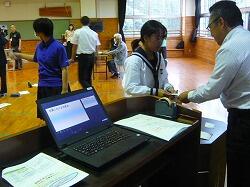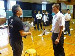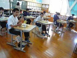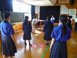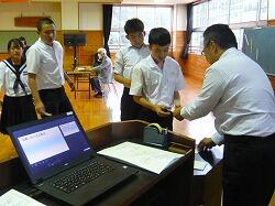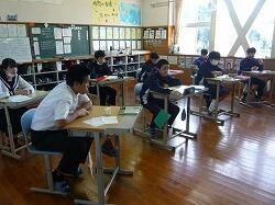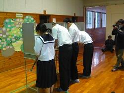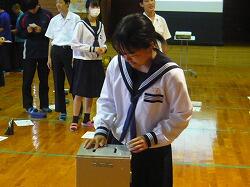 6校時目に全校生徒で選挙について、日南市選挙管理委員会の田中委員長、重永事務局長、白坂事務局次長3名の方々に説明をしていただきました。