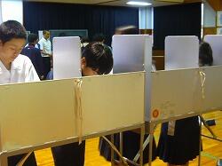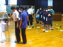 5校時目に生徒会役員選挙を行いました。選挙管理委員からの説明後に、6名の立候補者が演説をしました。どの立候補者も自分の考えを堂々と述べることができて、榎原中の今後を考えた素晴らしい内容でした。以下は選挙の様子です。