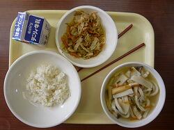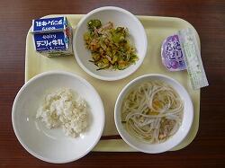 今日の給食は「減量麦ごはん、山菜うどん、ツナのごま油炒め」でした。今日もおいしくいただきました。ありがとうございます。