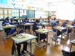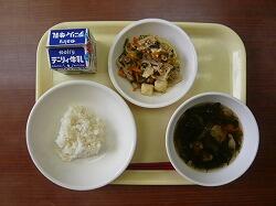 今日の給食は「麦ごはん、もずくスープ、にらともやしのチャンプルー」でした。今日もおいしくいただきました。ありがとうございます。