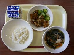 今日の給食は「麦ごはん、春雨スープ、のり塩から揚げ、きゅうり」でした。今日もおいしくいただきました。ありがとうございます。