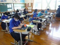2時間目の授業の様子です。1年生は数学です。2年生は1年生に勉強の仕方を教えるための資料作りをしています。楽しみです‼ 3年生は英語です。いつも楽しそうです。