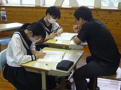 そして、4時間目に1年生は2年生から勉強の仕方を学びました。1年生は一生懸命にメモをとっていました。