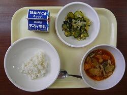 今日の給食は「麦ごはん、鶏肉のトマト煮、海藻サラダ」でした。今日もおいしくいただきました。ありがとうございます。