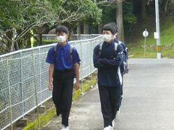 今朝の登校の様子です。長袖での登校が増えました。