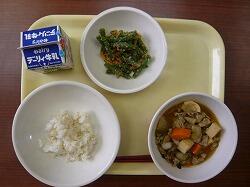 今日の給食は「麦ごはん、鶏肉のフォー、りっちゃんのサラダ、ぶどうゼリー」でした。りっちゃんのサラダは小学校1年生の国語の教科書にある「サラダでげんき」から生まれたメニューです。今日もおいしくいただきました。ありがとうございます。