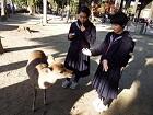 今、奈良公園です。鹿とたわむれたり、大仏を見学したり…。奈良を満喫しています。 *画像は加工しています。