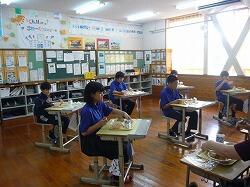 今日の給食は「麦ごはん、豆乳みそ汁、のり塩から揚げ、キャベツ」でした。今日もおいしくいただきました。ありがとうございます。お昼の放送もがんばっています。