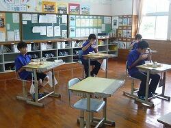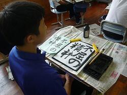 教頭先生の書写の授業(3年生)です。時のバランスや気をつける点について、丁寧に指導していただきました。