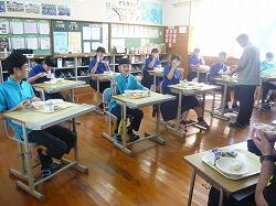 今日の給食は「減量麦ごはん、コーンラーメン、フルーツ杏仁豆腐」でした。今日もおいしくいただきました。ありがとうございます。
