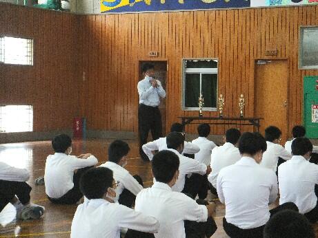 事前指導の冒頭で校長先生が3年生に激励の言葉を贈り、感染症への対応等の話がありました。