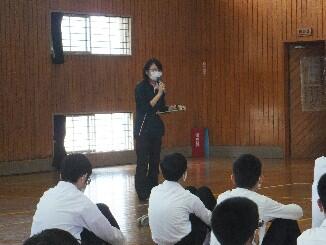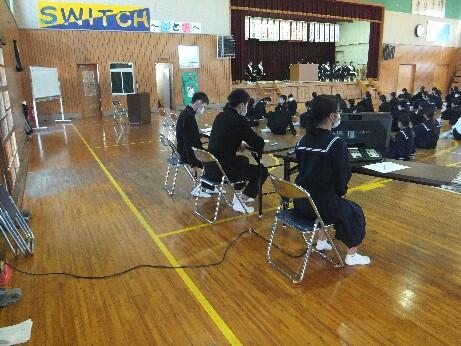 今年度は、新型コロナウイルス感染症拡大のため、各教室で放送による指導でした。