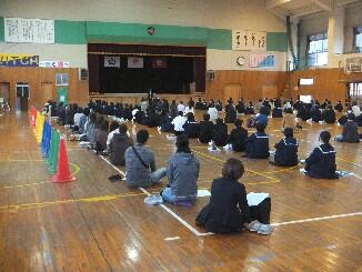 本年度はコロナの影響を受けて、全校生徒で集まる機会がほとんどなく、久しぶりに全校生徒で集まりました。みんな楽しく生徒会役員が企画したゲームに参加していました。東日本大震災が起こった14時46分には、全校生徒で黙祷を行いました。 (教頭:鎌田浩二)