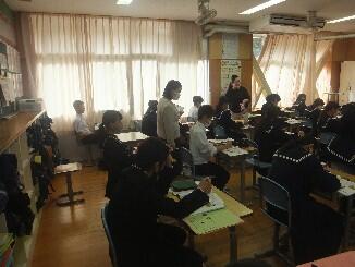 生徒たちは、久しぶりの小学校先生を懐かしむと同時に、緊張の様子で授業を受けていました。
