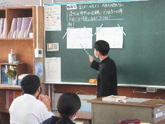 本日の1校時、1年2組で、中津教諭による道徳の研究授業を実施しました。