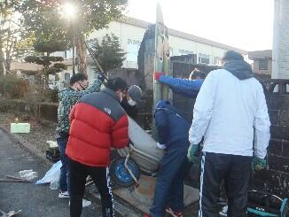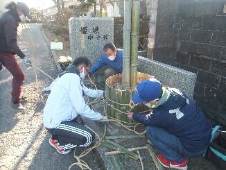 朝8時30分に、姫城中学校OBの有志が集まり、竹切りから制作まで、5時間程度の大作でした。