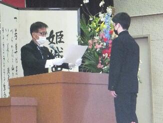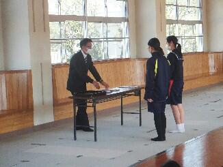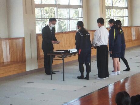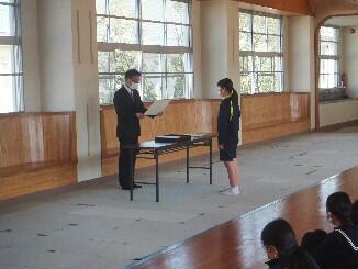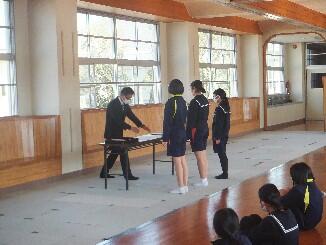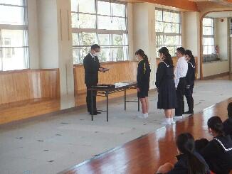 本日の4校時,生徒会役員任命式及び引き継ぎ式を実施しました。